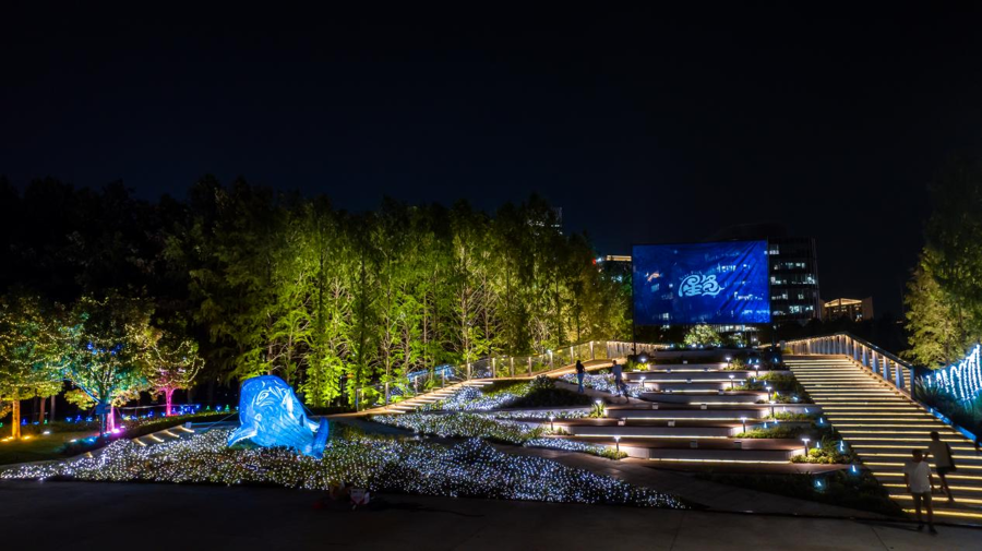 此次Better生活节深度嫁接上海国际光影节资源,在前滩勾勒出多维艺术图景。前滩休闲公园内,“星鱼奇缘”IP气模装置成为打卡热点,每晚通过巨型纱幕与激光投影播放动画,传递“人类与自然共生”理念;9月27日举办的《星鱼》新书发布会,更是将文学故事与光影艺术相结合泽峰资本,吸引大小读者参与。